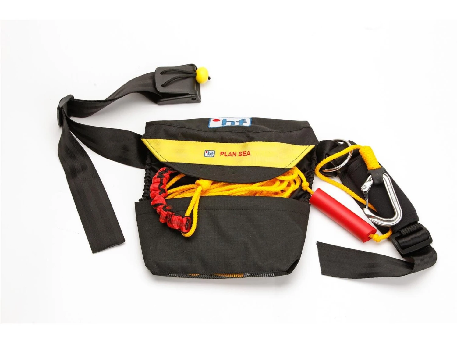 Einzigartig ist die kleine Neoprentasche am Gurt, in der der Karabiner verstaut werden kann und damit schneller für Rettungseinsätze griffbereit ist. Dank des ebenfalls am Gurt befestigten Edelstahlrings bietet die Plan Sea eine Vielzahl von verschiedenen Schleppvarianten und Rettungsmöglichkeiten.
