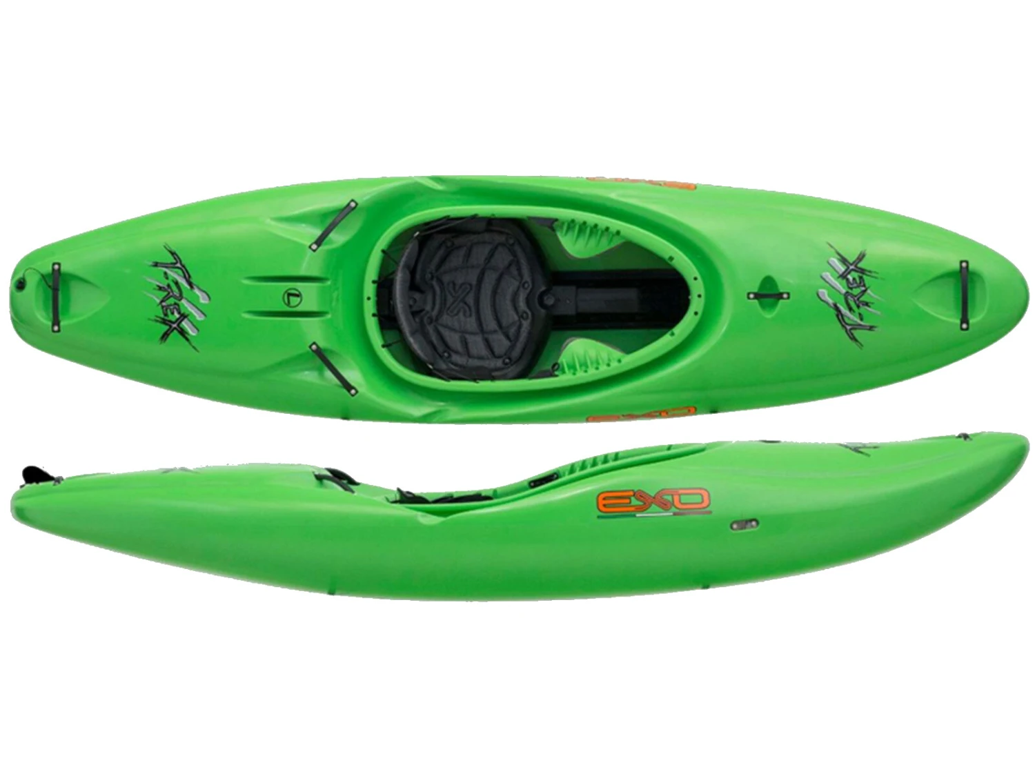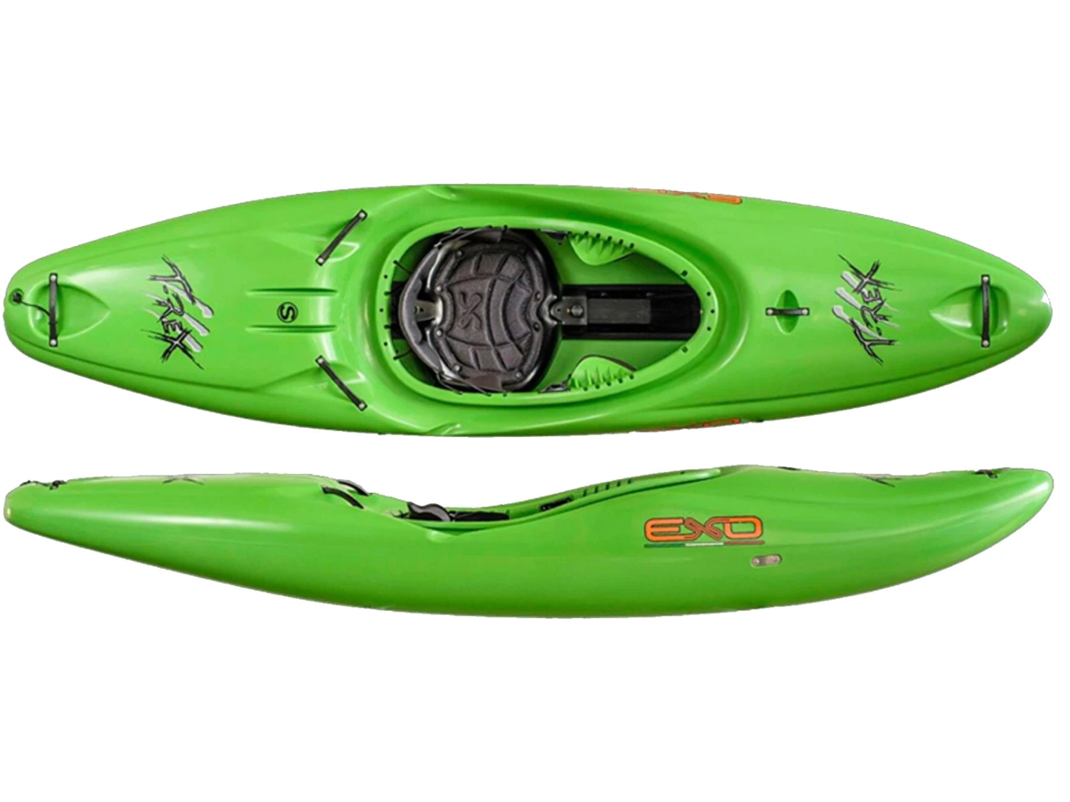 Das T-Rex vereint Steifigkeit und Leichtigkeit in einem Design, dabei ist es schnell und erstaunlich reaktionsfreudig. Das Boofen ist sehr leicht, ohne dass die Geschwindigkeit beeinträchtigt wird. Die abgerundeten Seiten geben Stabilität und machen das Boot auch bei hoher Geschwindigkeit handlich. Seine einzigartige runde Form macht den T-Rex zum idealen Kajak für hartgesottene Paddler und Anfänger, die ein stabiles und reaktionsschnelles Boot suchen. Trotz der Größe des T-Rex hat man dank der großzügigen Volumenverteilung den Eindruck, ein kleineres Boot zu fahren. Der T-Rex wurde komplett am Computer unter Software-Simulationen entworfen, so konnte das Verhaltens des Modells in dynamischen und unterschiedlichen Wasserumgebungen beobachtet werden.
