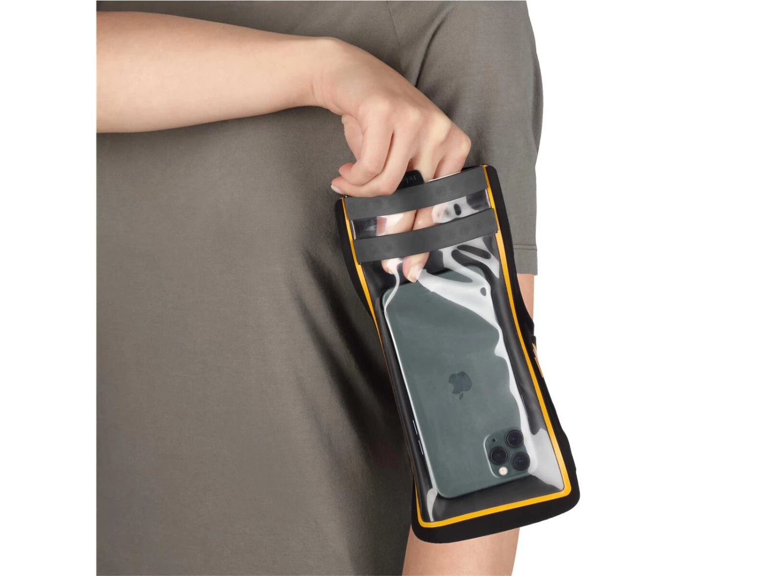 Wenn man beim Laufen oder Paddeln von einem Regenguss überrascht wird, ist die Tasche am Oberarm bereits vorbereitet. Egal ob Schauer oder Regenguss – das Smartphone ist dank der hermetischen Verriegelung 100%ig geschützt gegen Wasser und auch feinsten Staub.