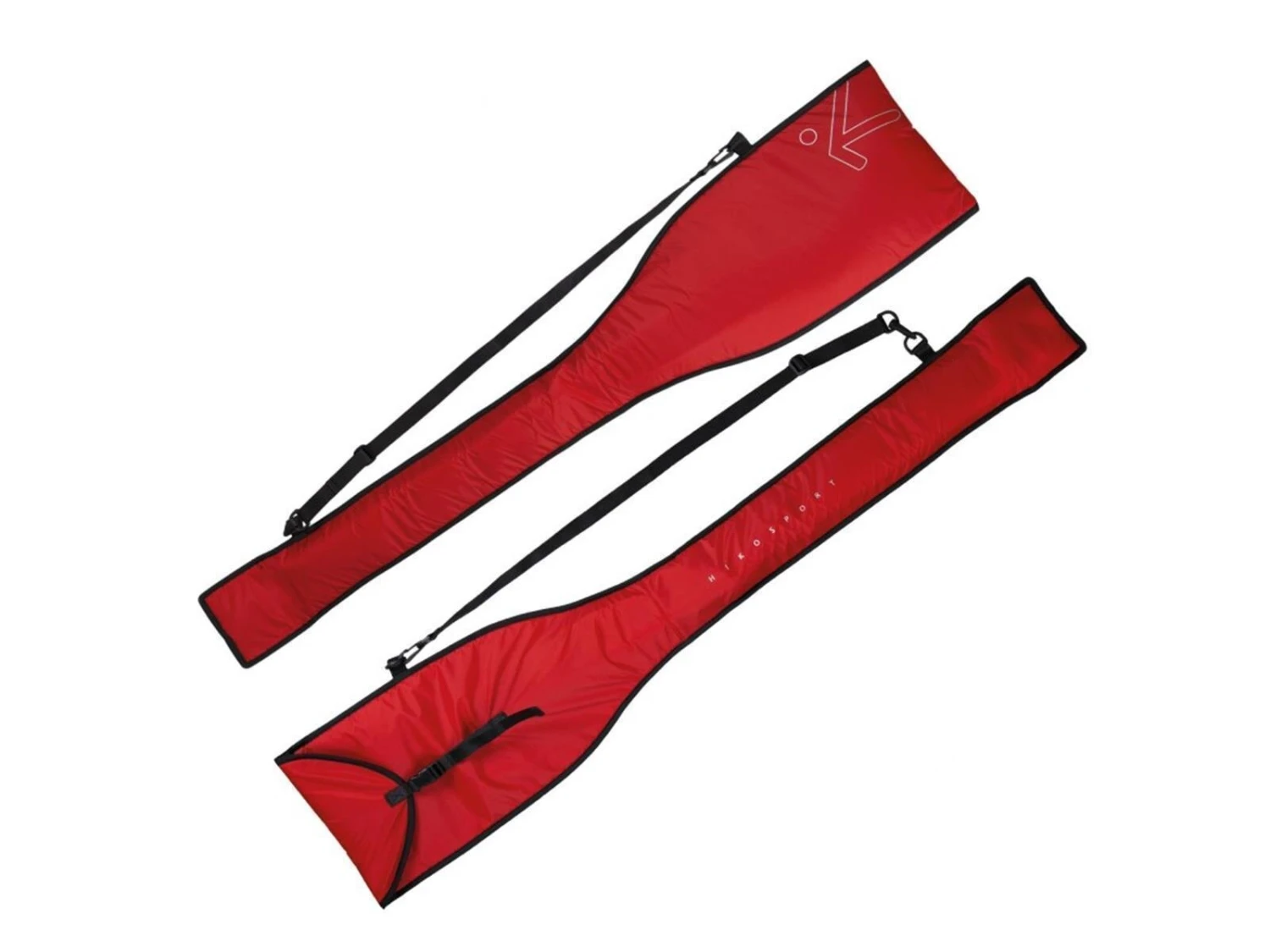 Halbgepolsterte Tasche für ein Kajakpaddel mit Trennwand, die als Abriebschutz dient.