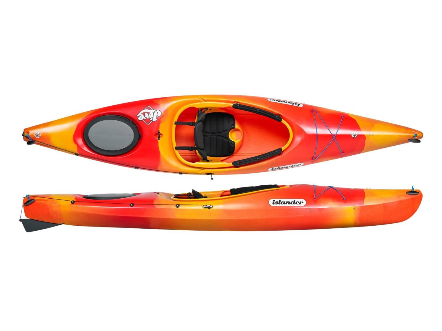 Der flache Rundspant in Verbindung mit einer langen, geraden Kiellinie machen den Jive kippstabil und trotzdem schnell. Die verstellbare Heckfinne verbessert bei Wind und Wellen den Geradauslauf. Mit dem großen, komfortablem Cockpit und der abgeschotteten Gepäckluke machen auch lange Tagestouren Spaß.