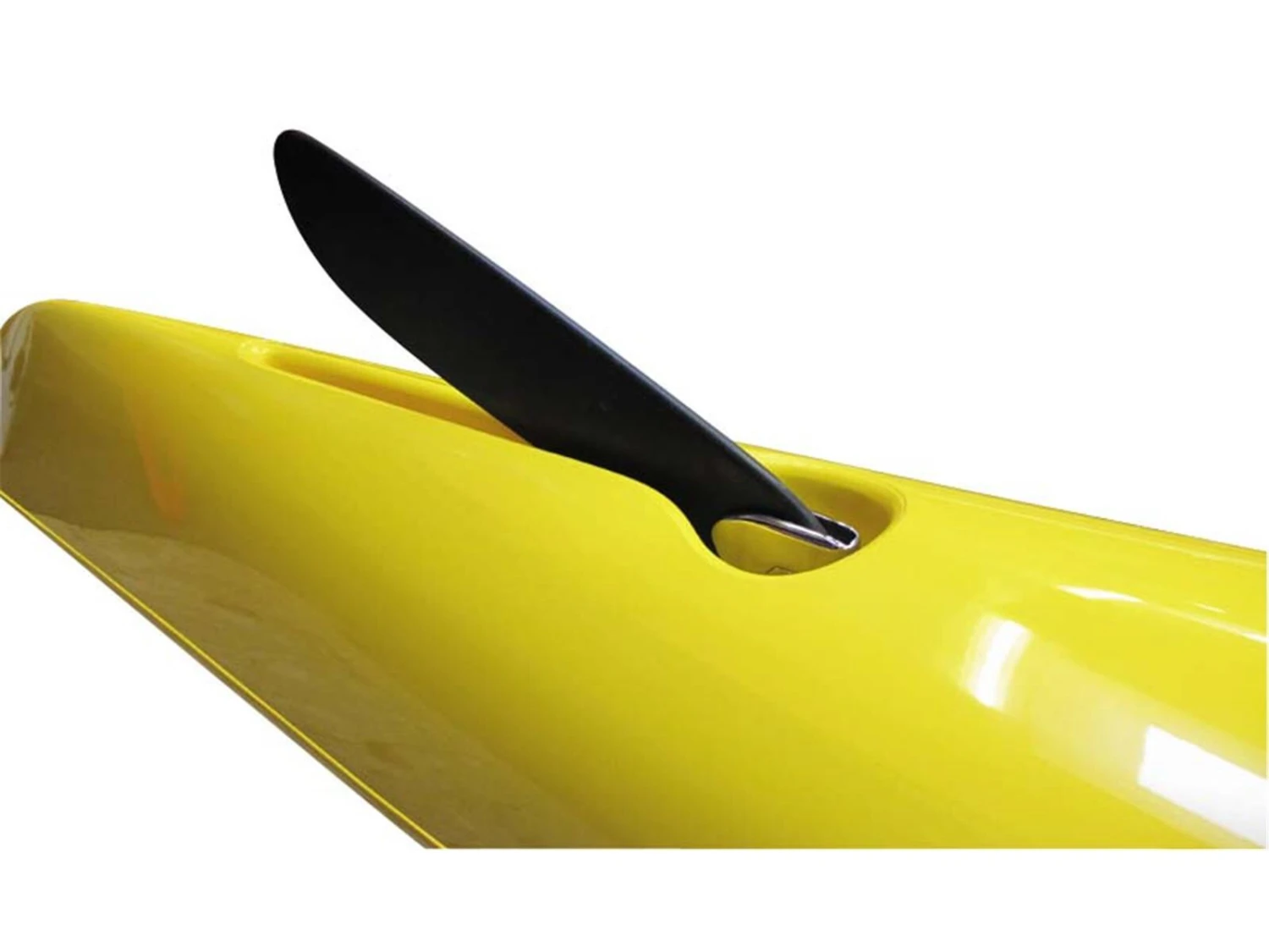 Die einzigartige Steuer-Skeg-Kombination im Skinner hat viele Vorteile. Fährst du das Steuer nur bis ca. zur Hälfte aus, so hast du ein vollwertiges Skeg. Das Boot bekommt viel Führung und du kannst Seitenwind oder Wind von achtern ausgleichen. Lässt du das Skeg komplett ins Wasser, ist es steuerbar. Gerade diejenigen Paddler, die sich nicht zu 100% sicher sind, ein Skegboot auch bei widrigen Bedingungen im Griff zu haben, schätzen diese Option sehr.
