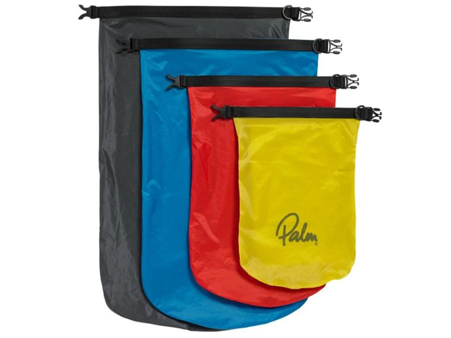 Praktisches Set verschieden großer, wasserdichter Leicht-Packsäcke von Palm bestehend aus einem 3, 5, 10 und 15 Liter Packsack.