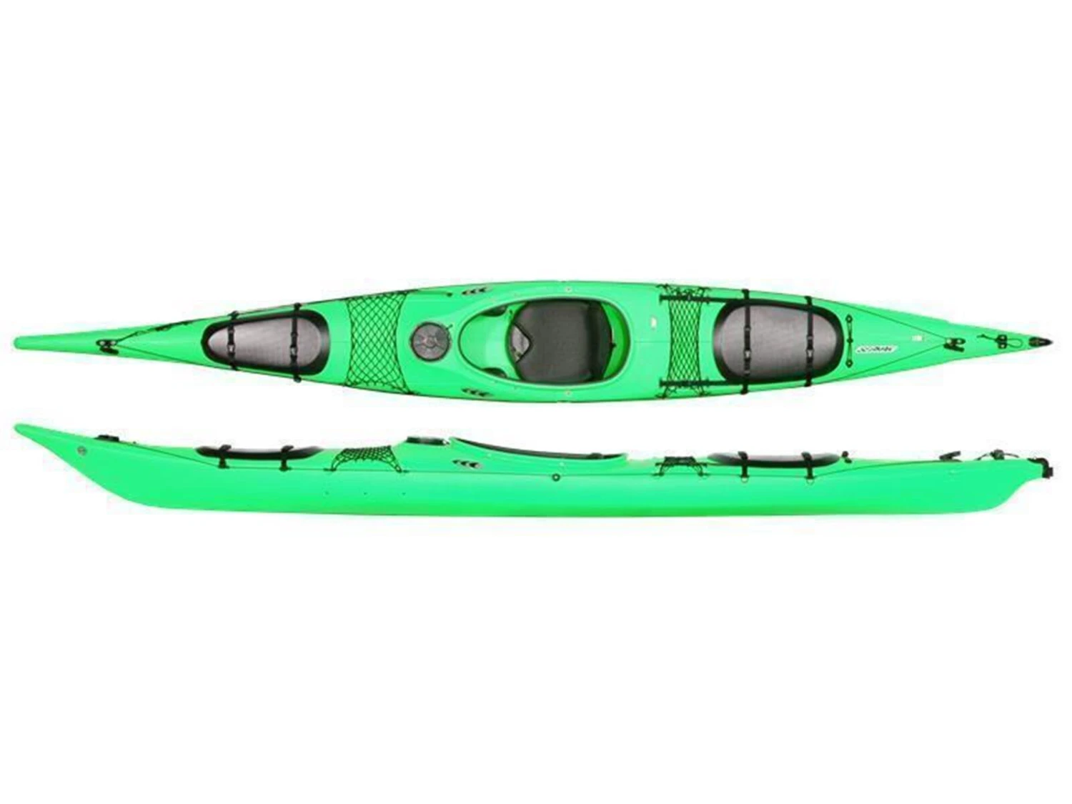 Wendiges Allround-Wanderkajak für Flüsse und offene Gewässer. Für Paddler im mittleren Gewichts- und Größenbereich bietet das Boot jederzeit komfortable Platzverhältnisse. Die längere und relativ schlanke Form machen dieses Boot schnell und ermöglichen eine angenehme Reisegeschwindigkeit. Die klassische Knickspant-Konstruktion des Unterschiffs geben dem Boot eine hohe Spurtreue sowie gute Beweglichkeit über die Seitenkante. Er lässt sich mit Gefühl hervorragend über die Kante lenken. Das ideale Kajak für längere Touren auf offenem Gewässer, mittleren bis großen Flüssen und dem Meer.
